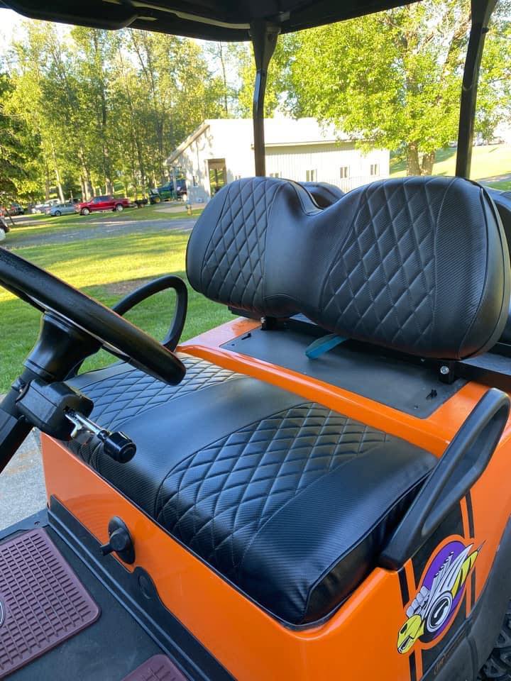 “With the customization options available for golf carts we wanted to offer an option for the seats unique to our company. We took what customers described and turned it into a reality.” – Synthia Beauvais