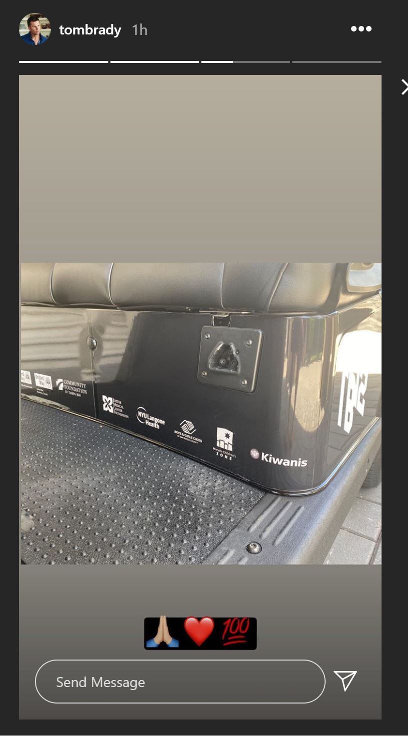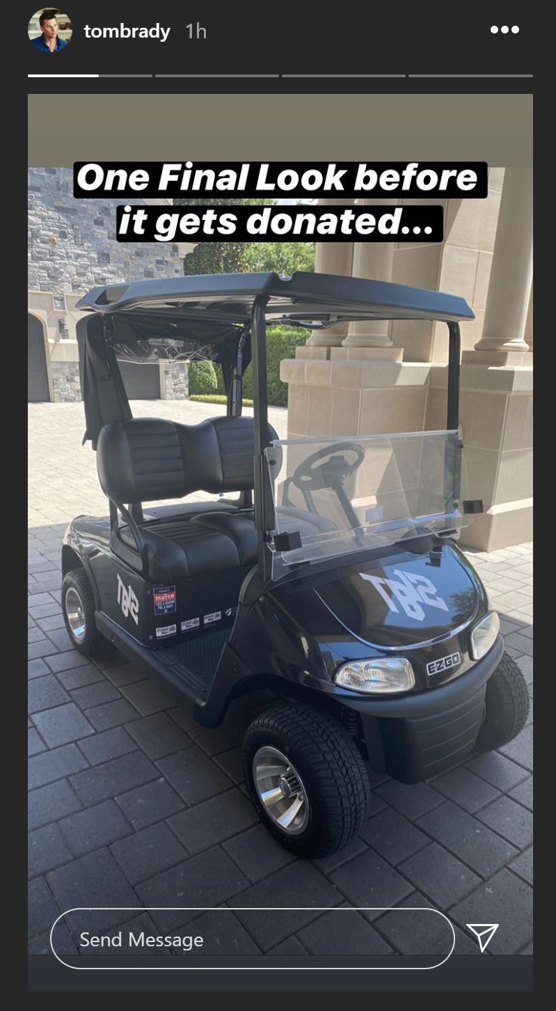 Recently, Tom Brady took to Instagram saying his last goodbyes to the custom made golf cart he used in The Match, which is now being donated. You can take a closer look at his farewell story on Instagram below.