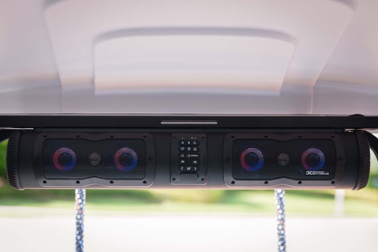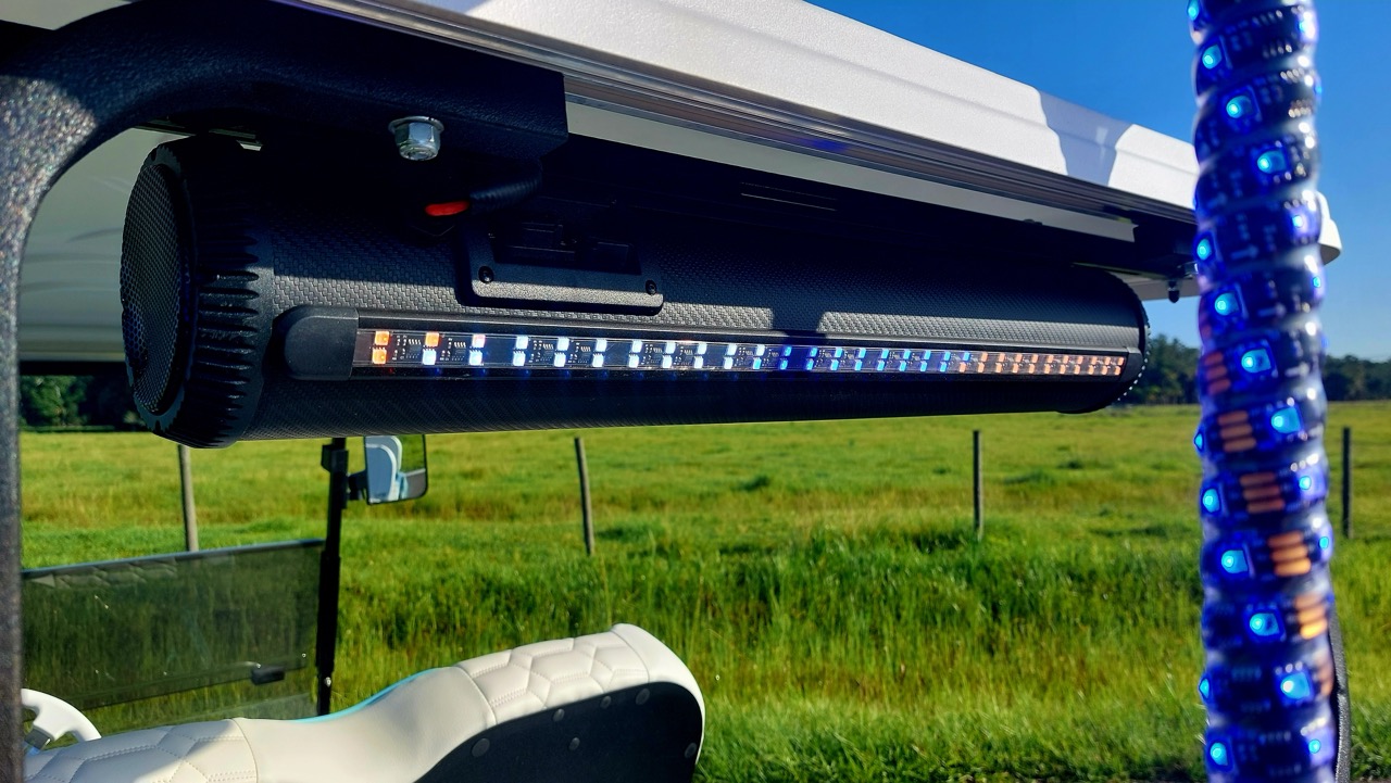 With a seeming endless assortment of golf car customization options on the market today, one of the most useful accessory solutions is a high-quality audio system. From head units and wired speakers, to portable speakers and roof systems, a soundbar offers not just audio but plenty of other very useful built-in features.